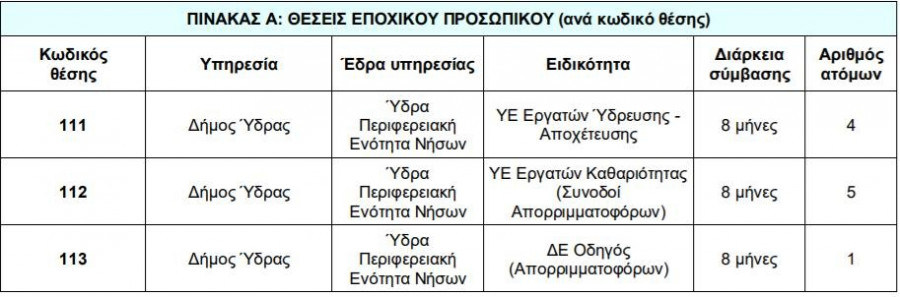 Δείτε αναλυτικά στον πίνακα τις θέσεις εργασίας: