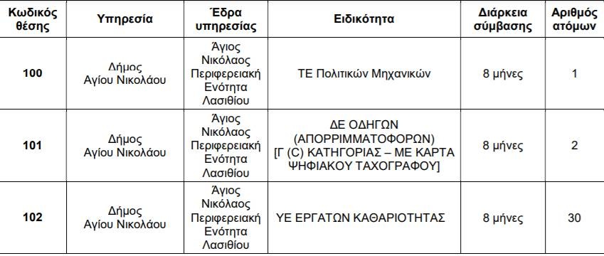 Δείτε στον πίνακα τις θέσεις εργασίας:
