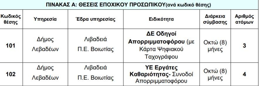 Δείτε στον πίνακα τις θέσεις εργασίας:
