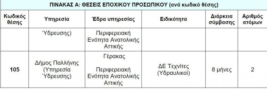 Δείτε στους πίνακες τις θέσεις εργασίας: