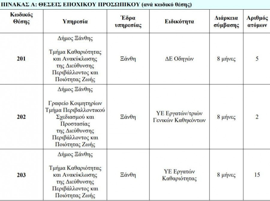 Δείτε στον πίνακα τις θέσεις εργασίας: