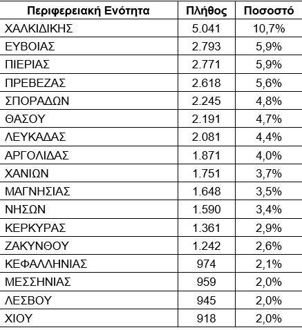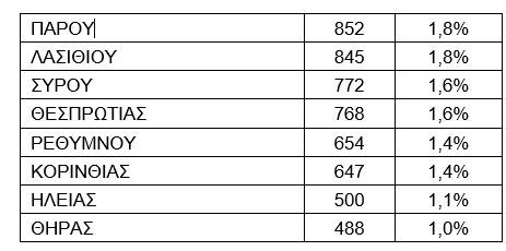 25 περιφερειακές ενότητες είχαν τον μεγαλύτερο αριθμό ενεργοποιημένων επιταγών