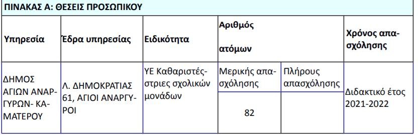 ΑΣΕΠ: Την πρόσληψη 82 καθαριστών σχολικών μονάδων προωθεί ο Δήμος Αγίων Αναργύρων - Καματερού.