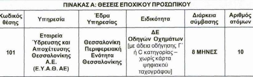 ΑΣΕΠ: Με συνολικά δέκα άτομα ειδικότητας ΔΕ Οδηγών Οχημάτων, θα ενισχυθεί η ΕΥΑΘ που εδρεύει στο Νομό Θεσσαλονίκης.