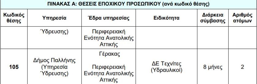 Δείτε στον πίνακα τις θέσεις εργασίας: