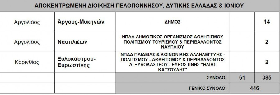 Δείτε αναλυτικά στους πίνακες σε ποιους δήμους θα γίνουν οι προσλήψεις:
