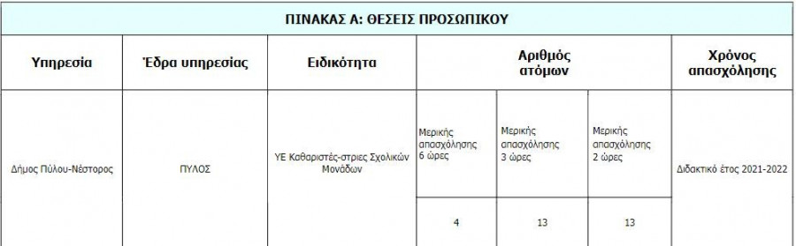 Δείτε στον πίνακα τις θέσεις εργασίας:
