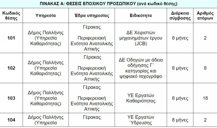 Δείτε στους πίνακες τις θέσεις εργασίας: