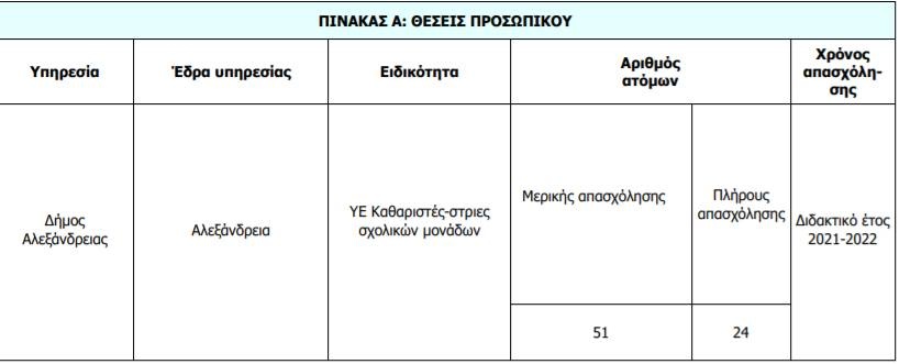 ΑΣΕΠ: Πρόσληψη, με σύμβαση εργασίας ιδιωτικού δικαίου ορισμένου χρόνου, συνολικά εβδομήντα πέντε ατόμων για την καθαριότητα σχολικών μονάδων στο Δήμο Αλεξάνδρειας.