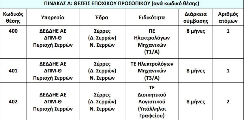 Δείτε στον πίνακα τις θέσεις εργασίας: