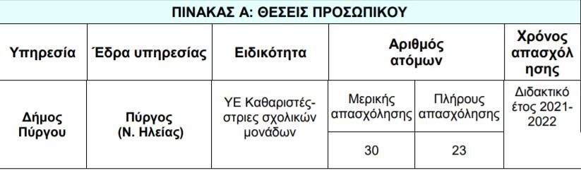 ΑΣΕΠ: Την πρόσληψη 53 καθαριστών σχολικών μονάδων προωθεί ο Δήμος Πύργου.