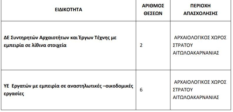 Προσλήψεις στην Εφορεία Αρχαιοτήτων Αιτωλοακαρνανίας και Λευκάδος