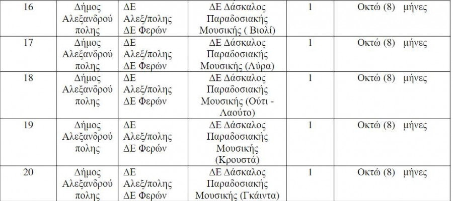 H πρόσληψη θα γίνει με σύμβαση εργασίας ιδιωτικού δικαίου ορισμένου χρόνου έναντι αντιτίμου, για την κάλυψη αναγκών, του Δημοτικού Ωδείου και του Παραρτήματος Δημοτικής Ενότητας Φερών, προχωρά ο δήμος Αλεξανδρούπολης.