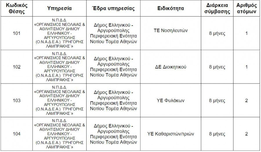 Με συνολικά έξι άτομα ενισχύεται ο Δήμος Ελληνικού Αργυρούπολης