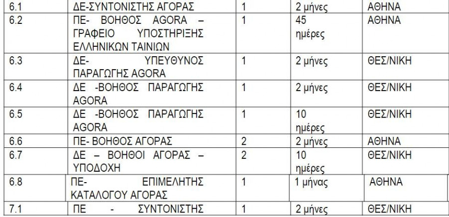 Δείτε στους πίνακες τις θέσεις εργασίας: