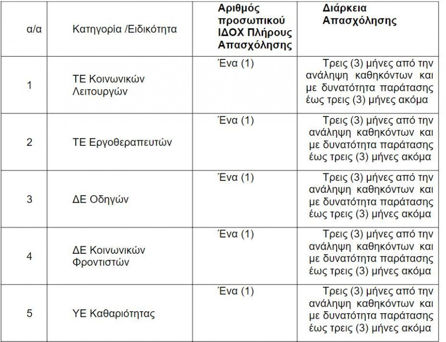 Δείτε στον πίνακα τις θέσεις εργασίας: