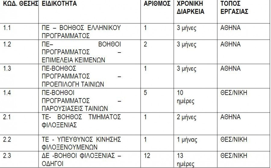 Προσλήψεις- Όλες οι ειδήσεις: Με 146 άτομα ενισχύεται το Φεστιβάλ Κινηματογράφου Θεσσαλονίκης - Δείτε αναλυτικά