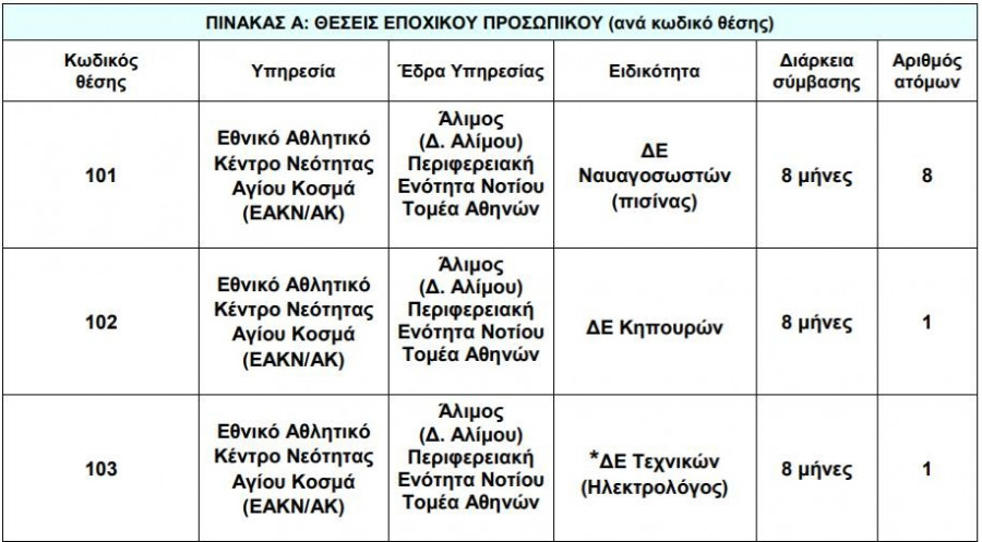 Δείτε τις θέσεις εργασίας στον πίνακα: