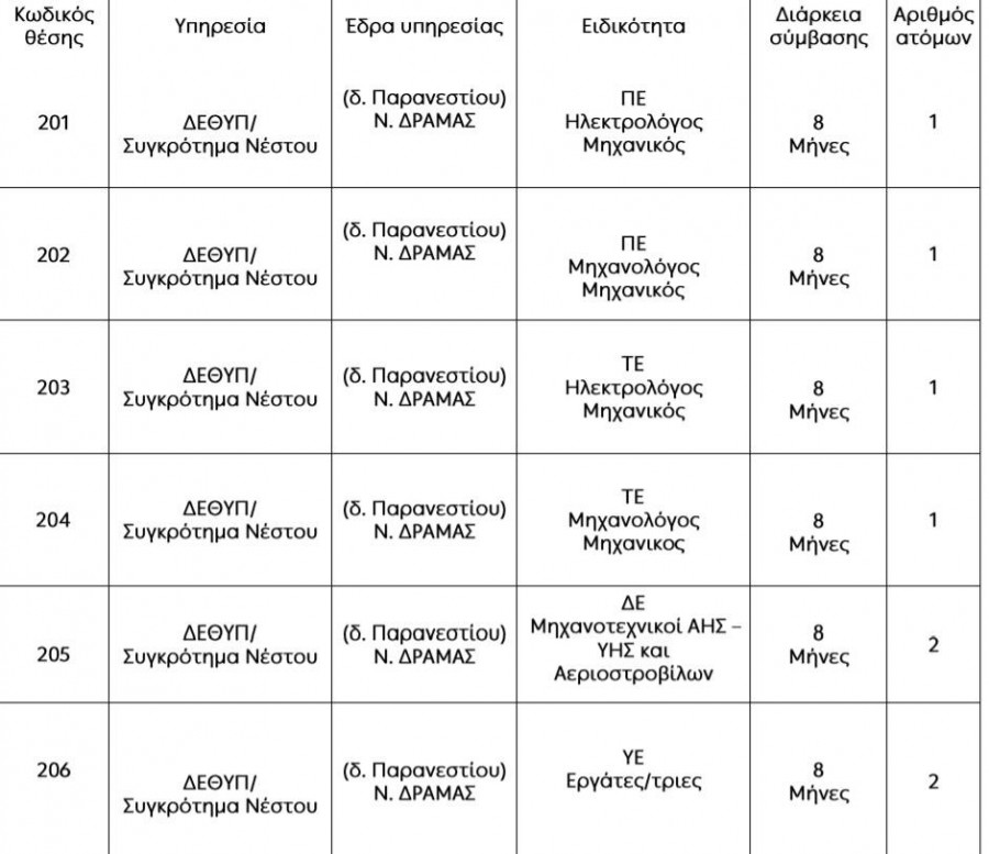 Η πρόσληψη προσωπικού θα γίνει με σύμβαση εργασίας ιδιωτικού δικαίου ορισμένου χρόνου για την κάλυψη εποχικών ή παροδικών αναγκών του Συγκροτήματος Νέστου της ΔΕΗ.