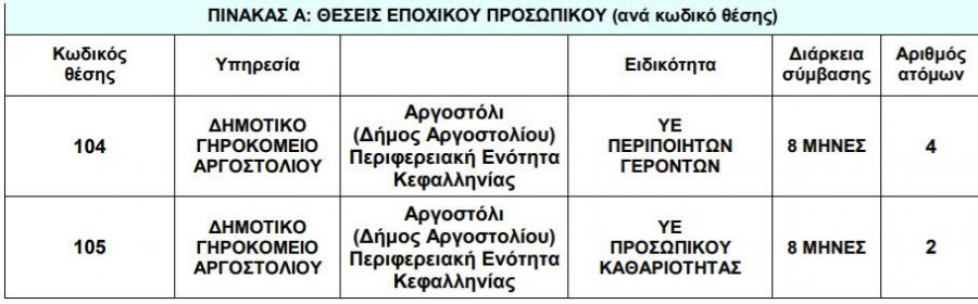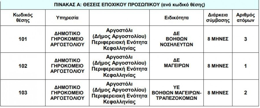 Προσλήψεις- Όλες οι ειδήσεις: Το Δημοτικό Γηροκομείο Αργοστολίου ανακοινώνει την πρόσληψη 12 ατόμων με σύμβαση εργασίας ιδιωτικού δικαίου ορισμένου χρόνου, διάρκειας 8 μηνών.