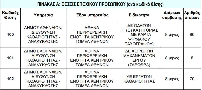 Προσλήψεις- Όλες οι ειδήσεις: O Δήμος Αθηναίων ανακοινώνει την πρόσληψη 155 ατόμων για την κάλυψη εποχικών ή παροδικών αναγκών ανταποδοτικού χαρακτήρα.