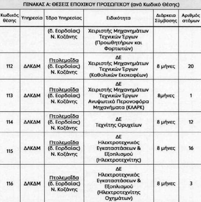 Δείτε αναλυτικά τις θέσεις στους πίνακες: