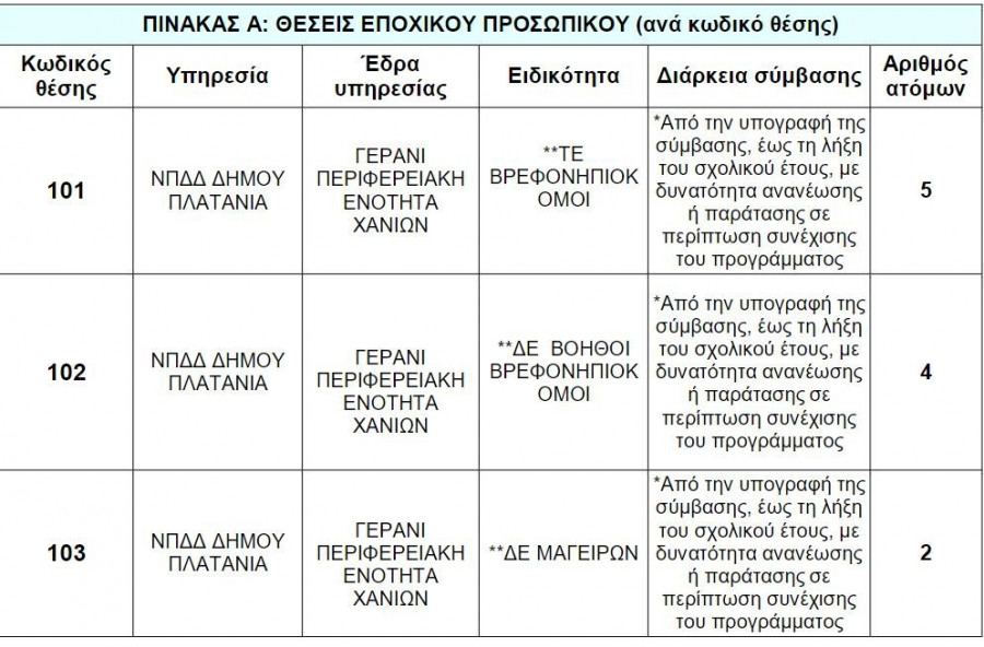 Προσλήψεις- Όλες οι ειδήσεις: Πρόσληψη με σύμβαση εργασίας ιδιωτικού δικαίου ορισμένου χρόνου, συνολικά δώδεκα ατόμων για την υλοποίηση της δράσης «Εναρμόνιση Οικογενειακής & Επαγγελματικής Ζωής» (περίοδος 2021-2022) , του Δήμου Πλατανιά που εδρεύει στο Γεράνι Χανίων.
