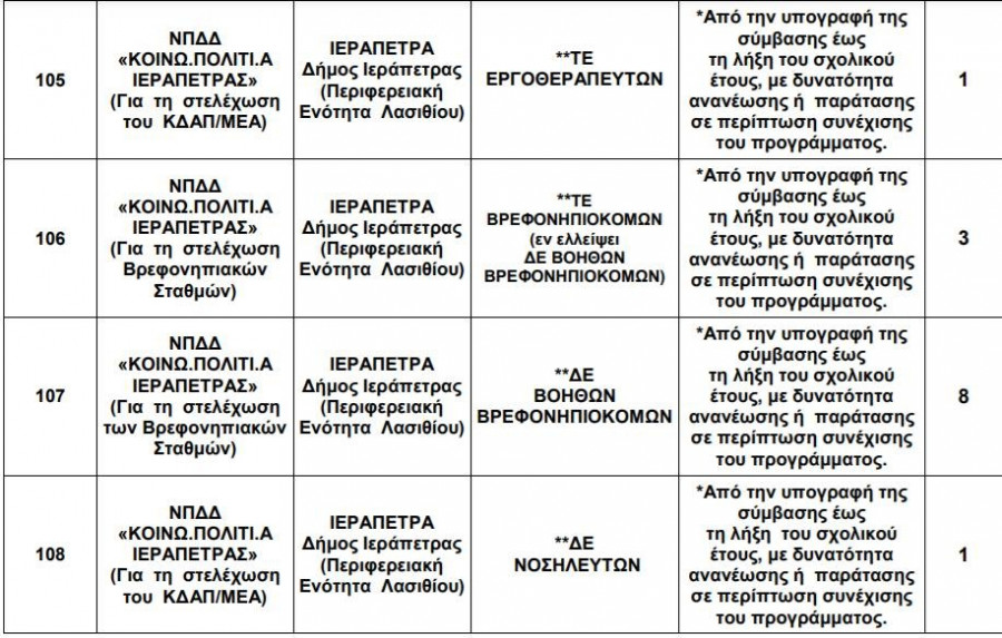 Προσλήψεις- Όλες οι ειδήσεις: Στην κάλυψη δεκαπέντε κενών θέσεων προχωρά ο Δήμος Ιεράπετρας για τις ανάγκες του προγράμματος «Εναρμόνιση Οικογενειακής και Επαγγελματικής Ζωής».