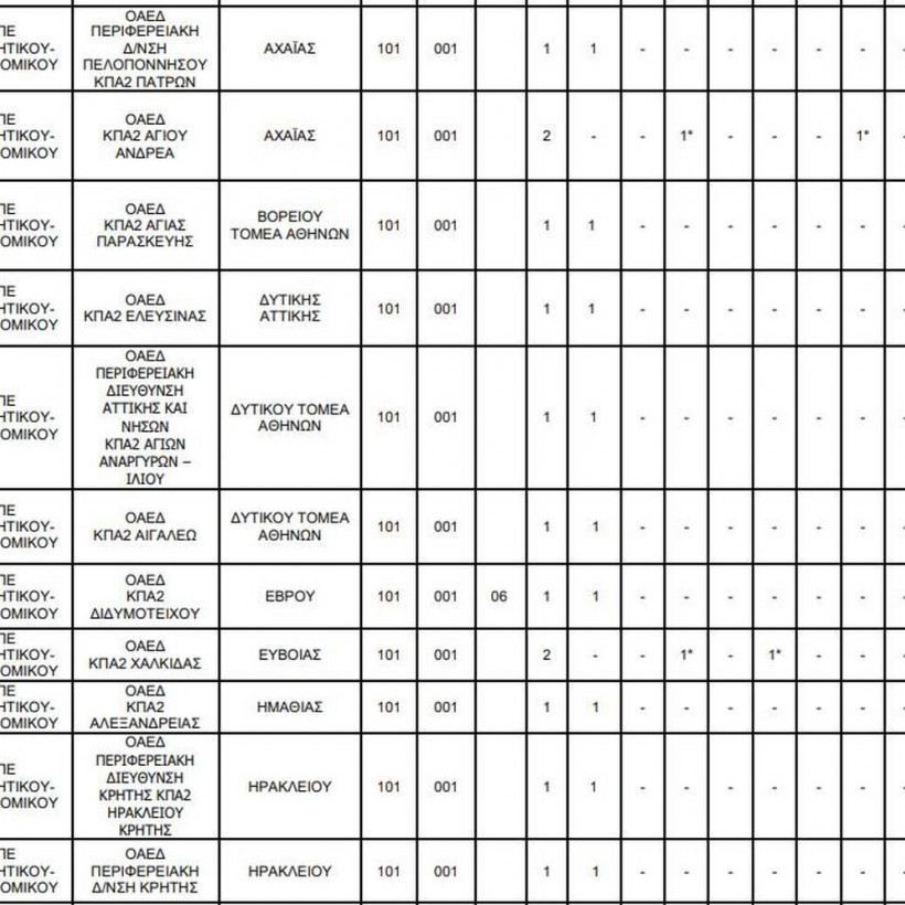 Δείτε αναλυτικά στους πίνακες τις θέσεις: