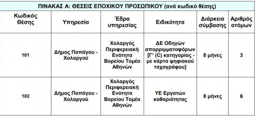 Προσλήψεις- Όλες οι ειδήσεις: Ο Δήμος Παπάγου-Χολαργού ανακοινώνει την πρόσληψη 9 ατόμων με σύμβαση εργασίας ιδιωτικού δικαίου ορισμένου χρόνου, διάρκειας 8 μηνών.