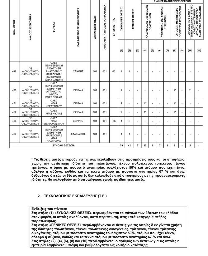 Κλάδου / Ειδικότητας: ΠΕ ΔΙΟΙΚΗΤΙΚΟΥ – ΟΙΚΟΝΟΜΙΚΟΥ - Β΄ Κατηγορία Τεχνολογικής Εκπαίδευσης (Τ.Ε.), έξι (6) θέσεις.