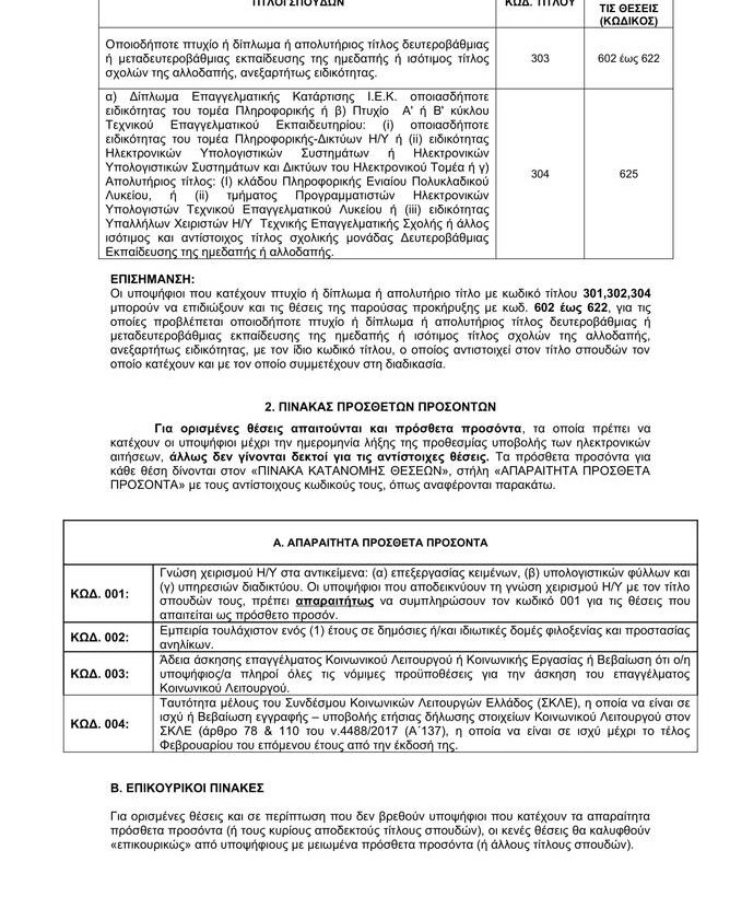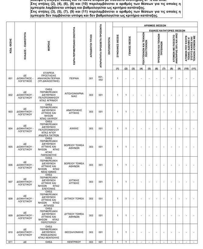 Κλάδων / Ειδικοτήτων: ΔΕ ΔΙΟΙΚΗΤΙΚΟΣ – ΛΟΓΙΣΤΙΚΟΣ, ΔΕ ΔΙΟΙΚΗΤΙΚΟΥ – ΛΟΓΙΣΤΙΚΟΥ, ΔΕ ΠΑΙΔΟΝΟΜΩΝ, ΔΕ ΠΡΟΣΩΠΙΚΟΥ Η/Υ