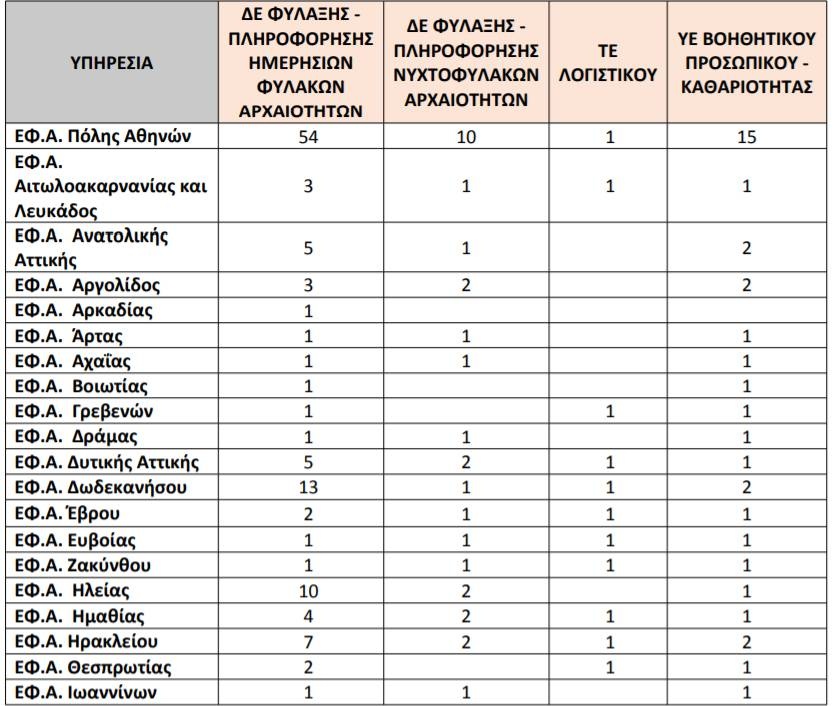 Δείτε τις θέσεις εργασίας στον πίνακα: