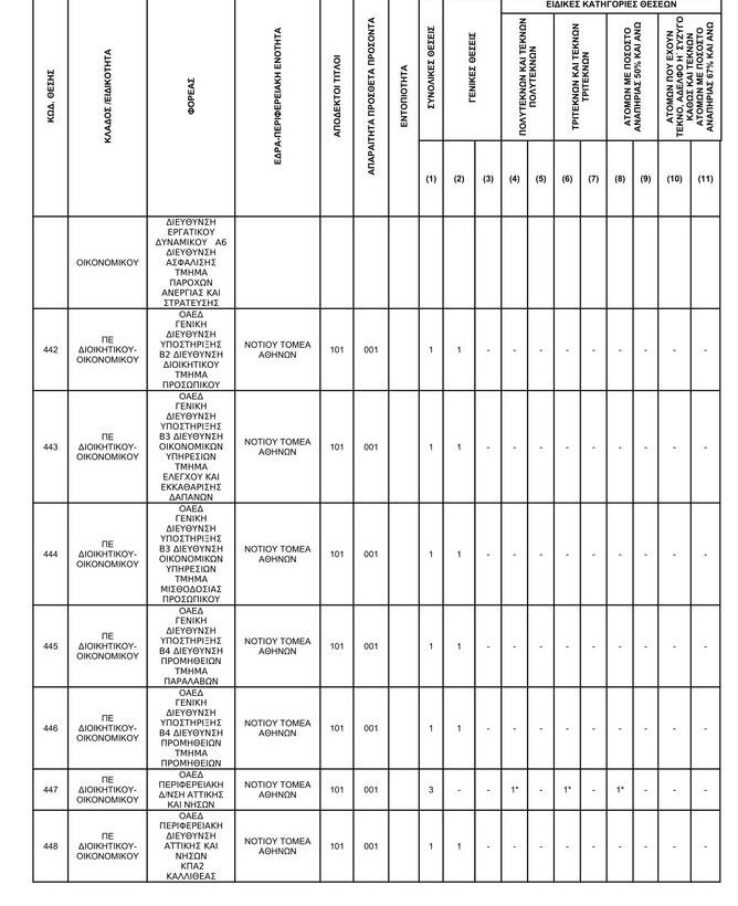 Κλάδων / Ειδικοτήτων: ΔΕ ΔΙΟΙΚΗΤΙΚΟΣ – ΛΟΓΙΣΤΙΚΟΣ, ΔΕ ΔΙΟΙΚΗΤΙΚΟΥ – ΛΟΓΙΣΤΙΚΟΥ, ΔΕ ΠΑΙΔΟΝΟΜΩΝ, ΔΕ ΠΡΟΣΩΠΙΚΟΥ Η/Υ