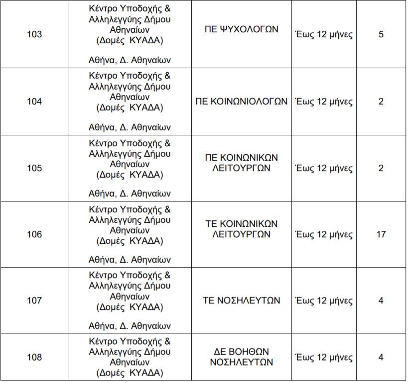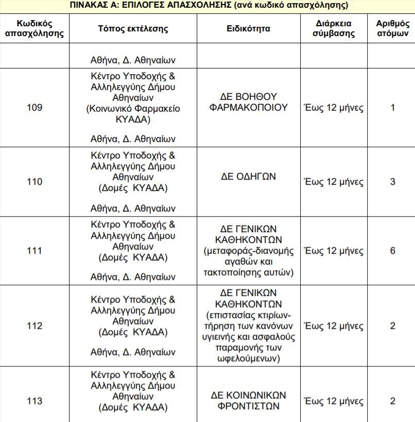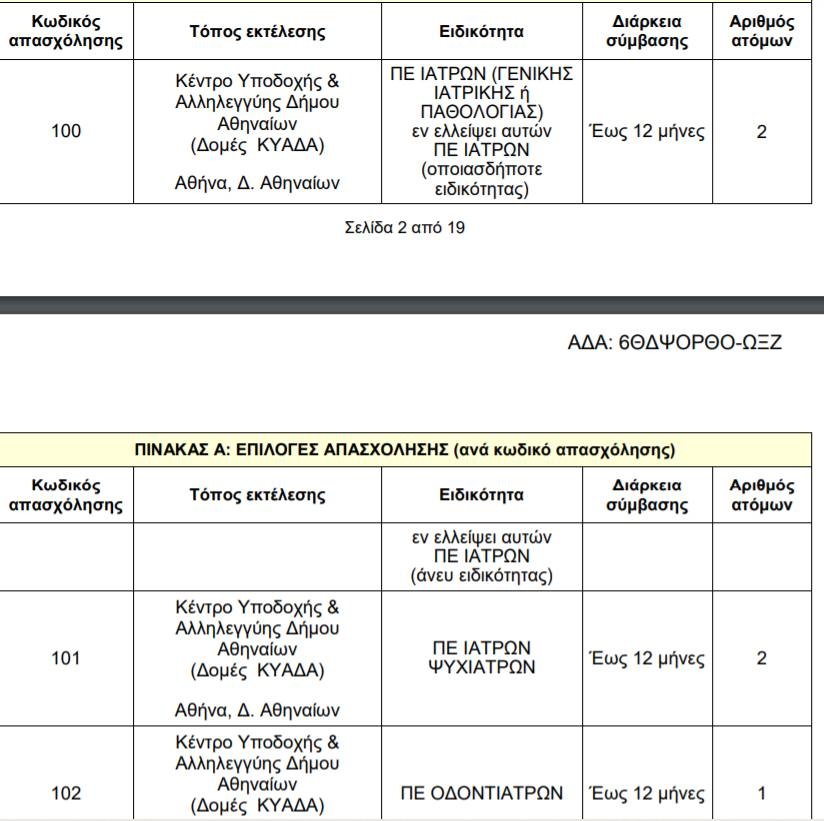 Προσλήψεις στο ΚΥΑΔΑ Δήμου Αθηναίων: Δείτε ειδικότητες