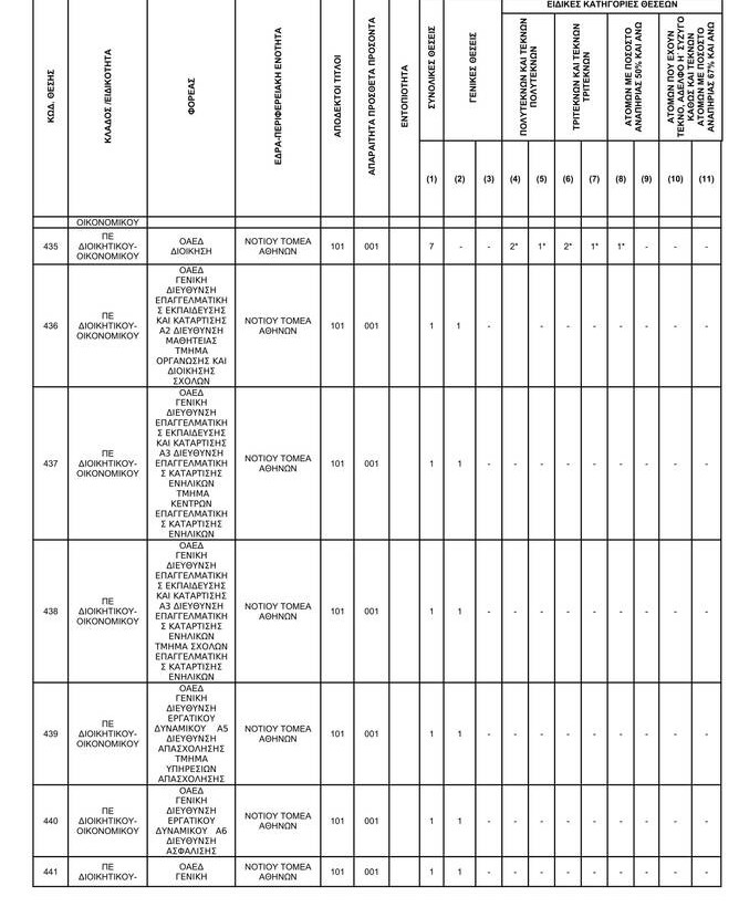 Κλάδων / Ειδικοτήτων: ΔΕ ΔΙΟΙΚΗΤΙΚΟΣ – ΛΟΓΙΣΤΙΚΟΣ, ΔΕ ΔΙΟΙΚΗΤΙΚΟΥ – ΛΟΓΙΣΤΙΚΟΥ, ΔΕ ΠΑΙΔΟΝΟΜΩΝ, ΔΕ ΠΡΟΣΩΠΙΚΟΥ Η/Υ
