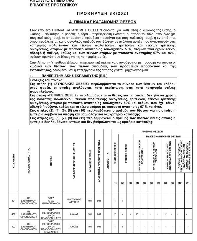 Δείτε στη gallery που ακολουθεί, την προκήρυξη 8Κ/2021 του ΑΣΕΠ, καθώς και τους πίνακες με τις θέσεις.