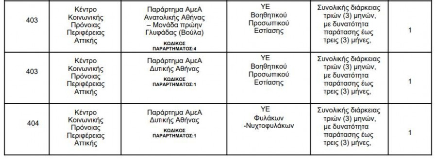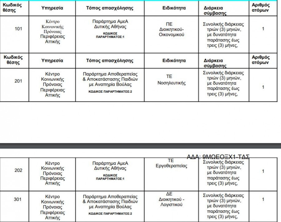 Οι προσλήψεις θα γίνουν για την αντιμετώπιση απρόβλεπτων και επειγουσών αναγκών του Κέντρου Κοινωνικής Πρόνοιας Περιφέρειας Αττικής (ΚΚΠΠΑ) αντίστοιχων προσόντων, κατηγορίας/εκπαιδευτικής βαθμίδας, κλάδου/ειδικότητας του προσωπικού που έχει τεθεί σε αναστολή καθηκόντων.
