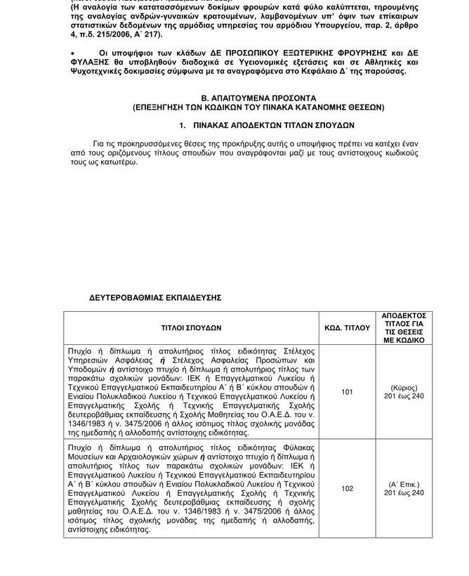 Δείτε τις θέσεις, στους πίνακες που ακολουθούν: