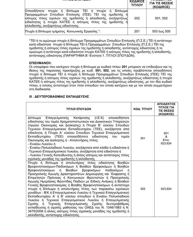 Κλάδων / Ειδικοτήτων: ΔΕ ΔΙΟΙΚΗΤΙΚΟΣ – ΛΟΓΙΣΤΙΚΟΣ, ΔΕ ΔΙΟΙΚΗΤΙΚΟΥ – ΛΟΓΙΣΤΙΚΟΥ, ΔΕ ΠΑΙΔΟΝΟΜΩΝ, ΔΕ ΠΡΟΣΩΠΙΚΟΥ Η/Υ