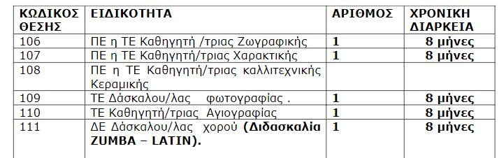 Δείτε στον πίνακα τις θέσεις εργασίας:
