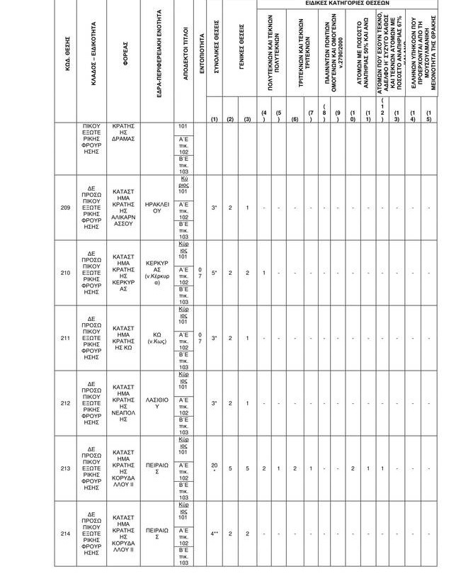 Δείτε τις θέσεις, στους πίνακες που ακολουθούν: