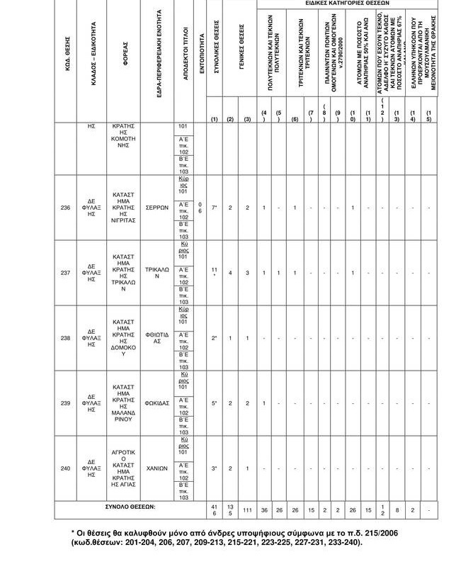 Δείτε τις θέσεις, στους πίνακες που ακολουθούν:
