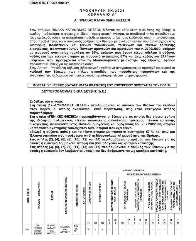Δείτε τις θέσεις, στους πίνακες που ακολουθούν:
