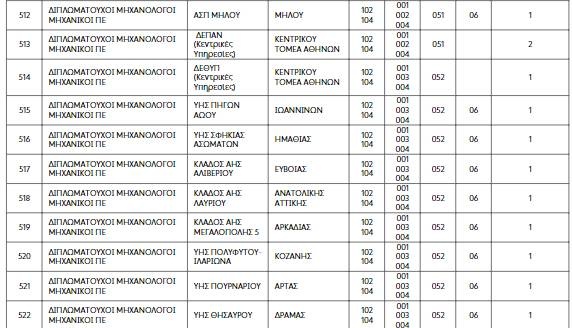 Δείτε στους πίνακες τις θέσεις εργασίας: