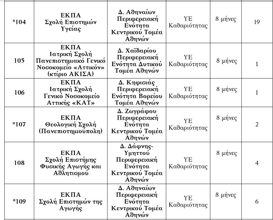 Το Εθνικό Καποδιστριακό Πανεπιστήμιο Αθηνών (ΕΚΠΑ) ανακοινώνει την πρόσληψη, με σύμβαση εργασίας ιδιωτικού δικαίου ορισμένου χρόνου, συνολικά εκατόν δέκα ατόμων για την κάλυψη εποχικών ή παροδικών αναγκών καθαριότητας.
