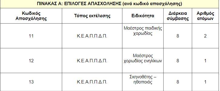 Οι προσλήψεις θα γίνουν με σύναψη σύμβασης μίσθωσης έργου για την κάλυψη αναγκών των πολιτιστικών προγραμμάτων της Κ.Ε.Α.Π.Π.Δ.Π.,