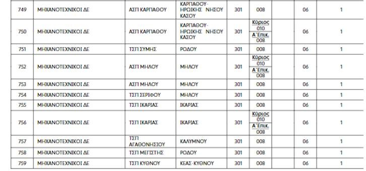 Δείτε στους πίνακες τις θέσεις εργασίας: