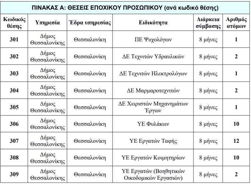 Δείτε στον πίνακα τις θέσεις εργασίας: