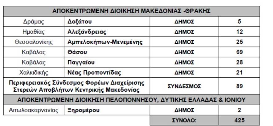 Οι προσλήψεις αφορούν 17 δήμους και τον ΦΟΔΣΑ (Περιφερειακό Σύνδεσμο Φορέων Διαχείρισης Στερεών Αποβλήτων) Κεντρικής Μακεδονίας.